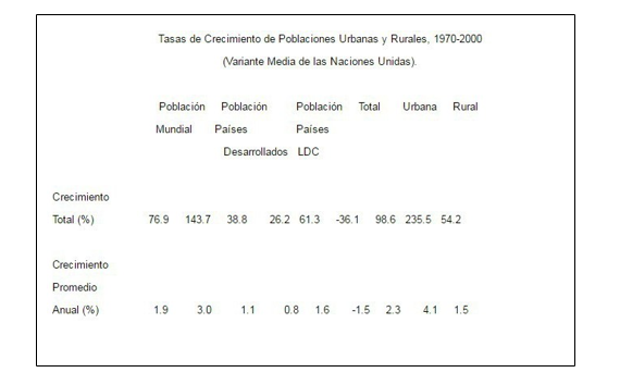 Las estimaciones de las Naciones Unidas utilizan la población de 1970 de 3.600 millones como base (hay casi 4 mil millones ahora) y proyectan entre 6 y 8 mil millones de personas para el año 2000 con una estimación media de los EEUU de 6.400 millones. Las proyecciones medias de los EEUU muestran una población mundial de 12.000 millones para el año 2075 lo que implica un incremento de 5 veces en el Sudeste de Asia y América Latina y un incremento de 7 veces en África, comparado con incremento de 2 veces en el Este de Asia y un incremento del 40% en los países desarrollados (ver Tabla 1). La mayoría de los demógrafos, incluyendo los Consejos de Población de las Naciones Unidas y de los Estados Unidos creen que 10 a 13 mil millones es el nivel más probable de estabilidad poblacional mundial, aun con esfuerzos intensivos en control de fertilidad. (Estas proyecciones asumen que suficientes alimentos pueden ser producidos y distribuidos para evitar limitaciones causadas por hambrunas.)