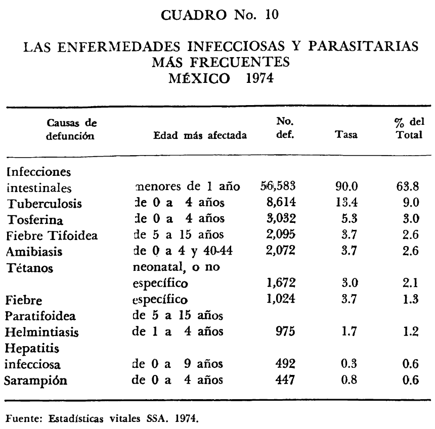 Los capítulos siguientes —Servicios de salud, Problemas de la Salud en México— acopian una detallada información acerca del funcionamiento de las instituciones existentes, su dispersión; las formas en que la medicina privada interviene en el proceso; las causas de la mortalidad; los índices de mortalidad por enfermedades; las enfermedades infecciosas y parasitarias, etcétera.