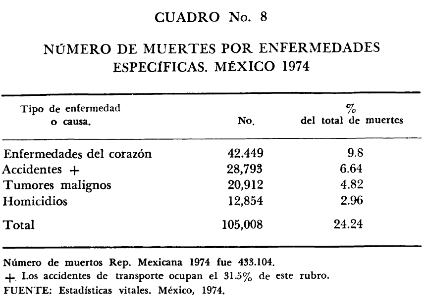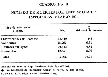 Los capítulos siguientes —Servicios de salud, Problemas de la Salud en México— acopian una detallada información acerca del funcionamiento de las instituciones existentes, su dispersión; las formas en que la medicina privada interviene en el proceso; las causas de la mortalidad; los índices de mortalidad por enfermedades; las enfermedades infecciosas y parasitarias, etcétera.